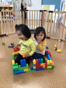 りんご組のお姉さんがブロックでお家を作ると“ぼくも入れて〜!”と☺️「いっしょにはいろう!」と誘ってあげる優しいお姉さんです💓