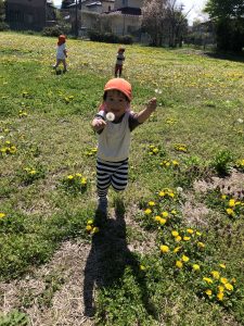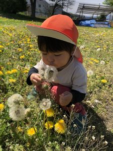 「ふぅ〜」と息を吹くと飛んでいく綿毛に興味津々で、見つけた時にはにこにこの可愛らしい表情をしながら見せに来てくれます☺️