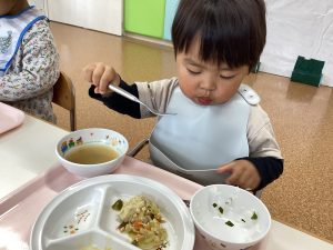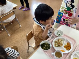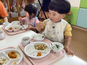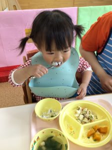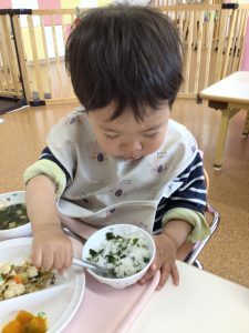 「ごはんにわかめあったね!」とお話を楽しみながら食べていましたよ😋