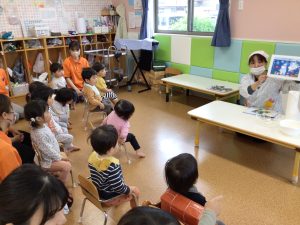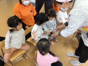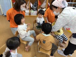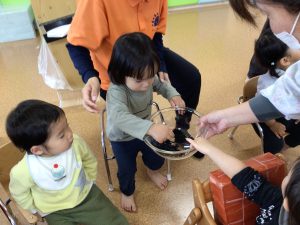 いちご組のお友だちは、触ることに少し抵抗をしていましたが、お友だちが触っている姿を見ると“さわってみようかなぁ”とゆっくりと手を伸ばして指先で“ツンツン”としていましたよ☺️