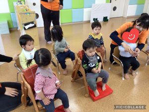 「上からぎゅって持って仲良し仲良しするんだよね!」と声をかけてもらうと、自分の手を見つめて親指とそれ以外の指を合わせて“仲良し”をしましたよ🎵