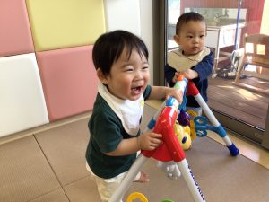 もも組さんのお友だちは、つかまり立ちができる素敵なおもちゃがお気に入りです💓「立っちが上手だね!」と褒めてもらえると満面の笑みを見せてくれました😍