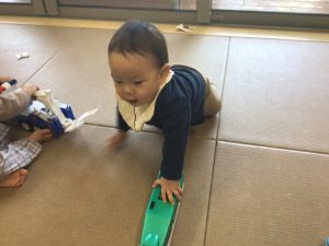 「ぷっぷー!とおりまーす!」と想像を膨らませながら楽しく遊んでいますよ🎵