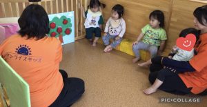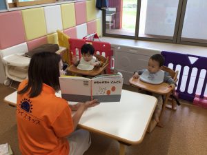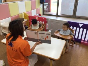 はじめは不思議そうに見ていた子どもたちですが、保護者が声色を変えて読むとだんだん楽しい気持ちになり“にこっ💓”と笑い出す子もいました☺️