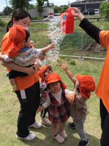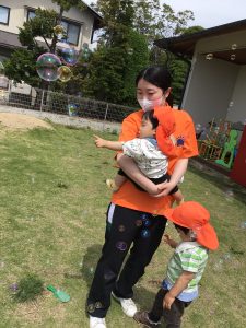 先日、りんご組さんともも組さんでしゃぼん玉遊びをしましたよ🫧