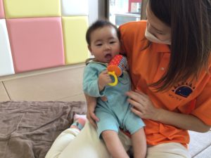 お兄さんお姉さんの真似っこをしてボールを持つことができて、とっても嬉しそうな表情を見せてくれました🎵
