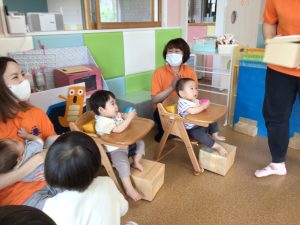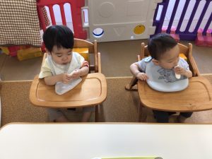 絵本の後は朝の会をして、大好きなおやつの時間です🍪