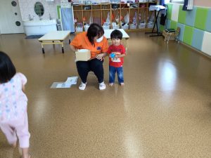 次は1人ずつボックスの中からカラーボールを取り、その色をみんなに伝えてもらいました❣️ボールを見ないように目を瞑って選ぶ可愛らしい姿も💓