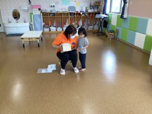 保育者の後に続いて「green」「orange」と発音することができていましたよ🎵