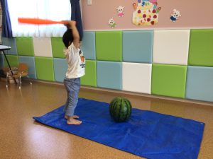 もも組さんから順番にすいか割りに挑戦しました🌟