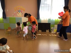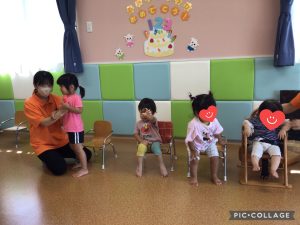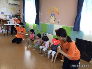 もも組さんのお友達の真似をして上手に叩くことができました❣️