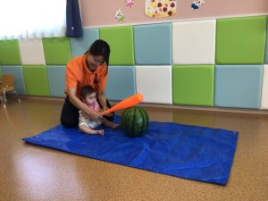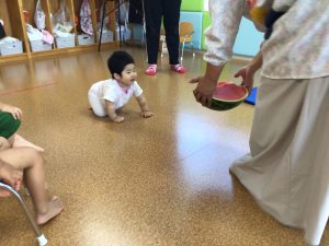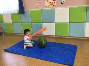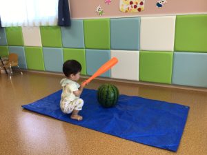 もも組のお友だちも大きなスイカに興味津々でハイハイで追いかける可愛らしい姿を見せてくれました😍
