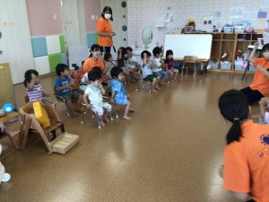 まず初めに8月の歌『アイアイ』を歌いました🐵🍌
