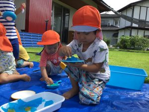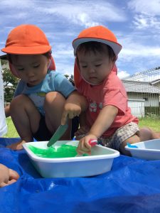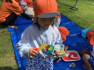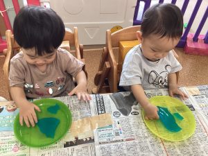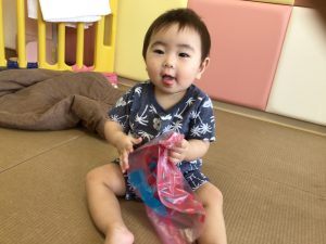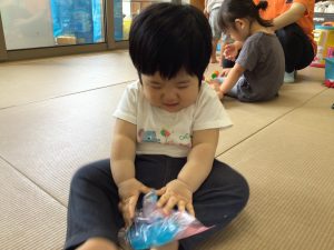 不思議な感触に長い時間夢中で遊んでいたもも組さんです☺️