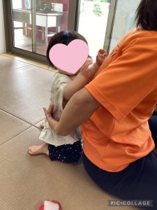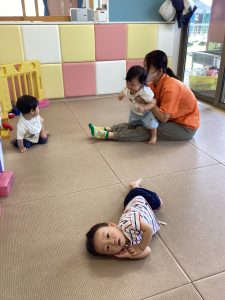 園生活にも少しずつ慣れ、保育者とのスキンシップも楽しんでいます😊