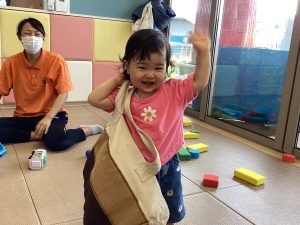 「ここにボールを入れられるかな?」と声をかけると「できるよ!」と自信満々で取り組むことができました😊