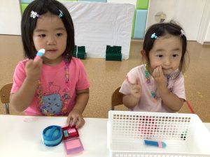 りんご組さんはお化粧ごっこが流行っています💄