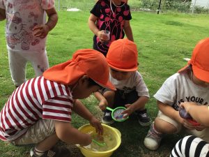 青色のお水が緑色に変身❗️色々な発見に夢中で取り組む姿が☺️