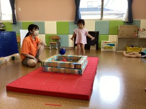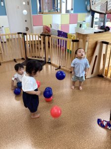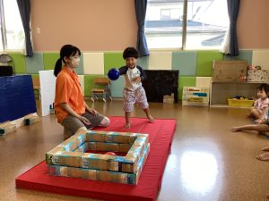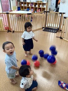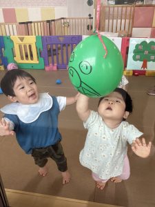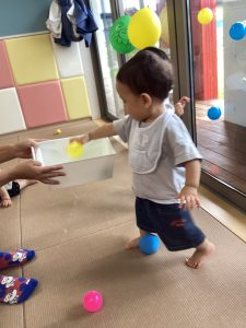 もも組さんは風船とボールを使ってのびのびと体を動かしました🎵