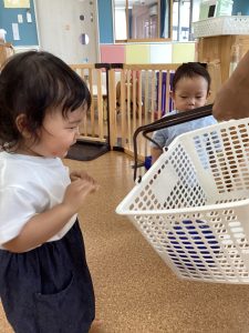 指先に力を入れて一つずつ取ることができ“どうぞ!”と保育者に渡してあげました😊