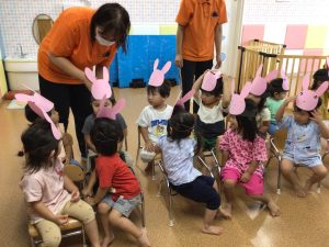ゲームに向けて以前各クラス用意をしていたうさぎさんに変身をしましたよ🐰💓