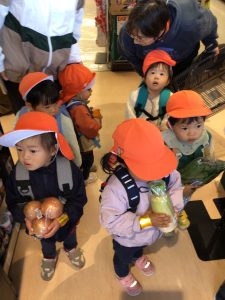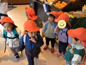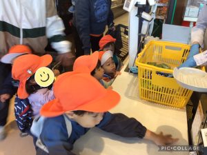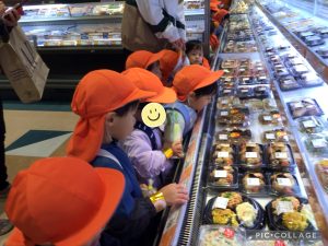 「どれがいいかなぁ・・」と美味しそうなお惣菜コーナーで立ち止まるいちご組さん😊