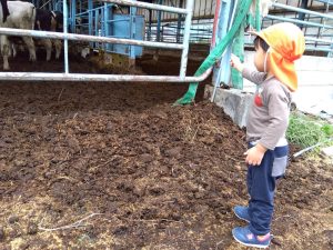 牛さんが大好きなお友だちは藁を拾って「どーぞ!」と渡してあげようとする姿が😊
