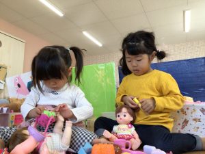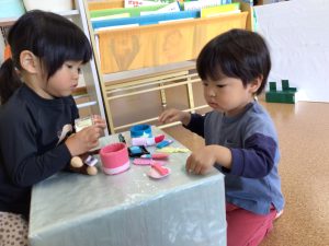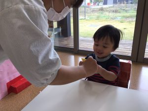 持ち方を一緒に確認しながらとっても集中して遊んでいます❗️