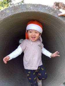 トンネルを抜けた先に待っていた保育者にぎゅーをしてくれたお友だち💓