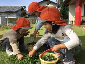 園庭で遊んだ日は、雑草をお野菜に見立ててご飯を作りましたよ🌟