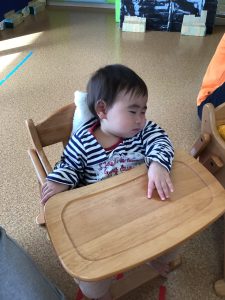 「いただきます!」とご挨拶すると、手を伸ばして食べる真似っこをしていた子どもたちです💓