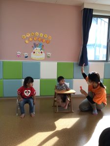 おててをパチパチさせたり体を揺らしたりと“おめでとう”の気持ちを伝えることができたね😊