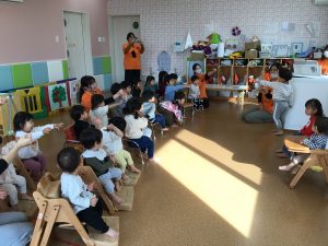 最初は季節のお歌『やきいもグーチーパー』を歌いました🎵