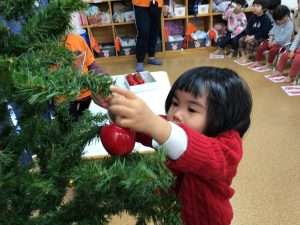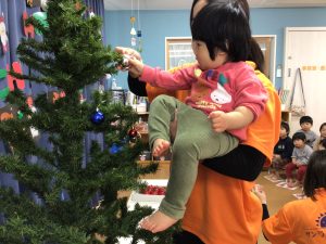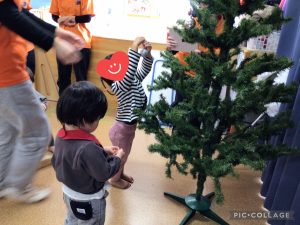 次にクリスマスツリーの飾り付けをしました!