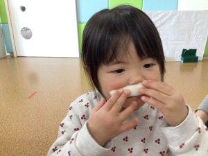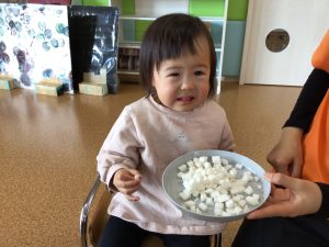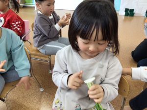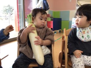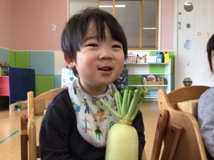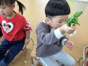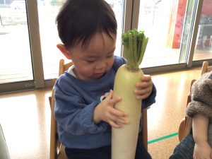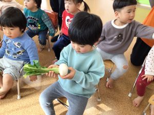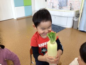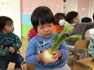 先ほどとまた違った形のかぶに、不思議そうな表情で見つめていたお友だち