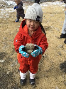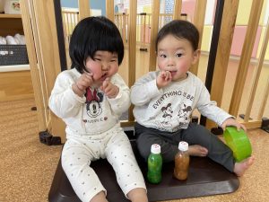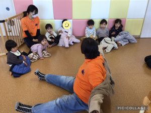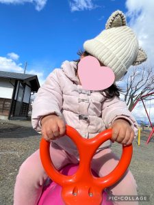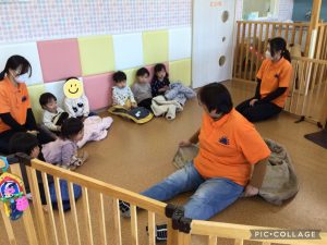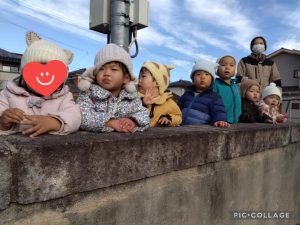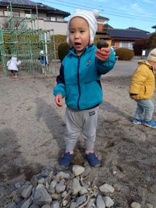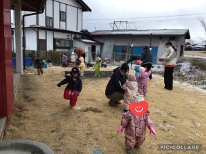 この日は風が強かったので保育者に抱っこをしてもらったり、おしくらまんじゅうをしたりして身体を温めるお友だちもいました💓