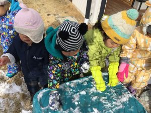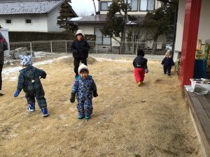 先週はたくさんの雪が降り、保育園のお庭にも少しだけ積もりましたよ☃️