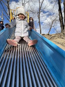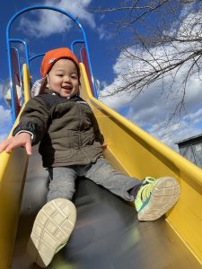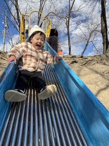 とても長い距離のお散歩でしたが、お友だちや保育者と手を繋ぎながら「すべりだいであそびたい!」「こうえんにはなにがあるかな?」と会話を楽しみながら向かいました🎵