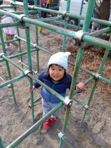 初めてのジャングルジム❣️迷路のように探検をしていました😊