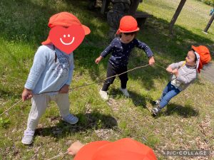 他のお友だちも集まってきて「ん〜!よいしょ〜!」と協力して蔦を引っ張っていました!