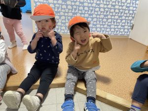りんご組さんはお散歩に出掛ける前にお友だちと写真を撮りました📸