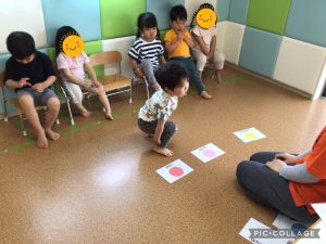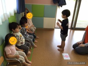 お友だちにカードを見せて合っているか見てもらい、合っているとお友だちが「おっけ〜!」と丸を作ってくれました!