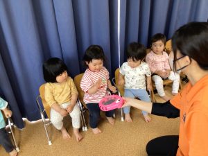 初めにタンバリンを叩きながら「はーあーい!」とお返事をしてみました。