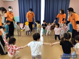 リトミックでは、全クラス合同で行いました!