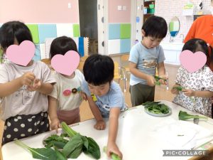 最後まで真剣な表情で小松菜を千切ってくれました☺️