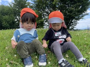 シロツメクサが沢山咲いていました!お友だちと並んで座り、一緒にシロツメクサを摘んでいましたよ🌼