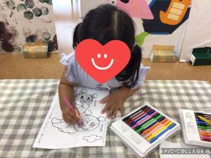 りんご組さんは塗り絵に挑戦しました!大好きなアンパンマンの塗り絵を見ると大喜び😊
