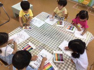 お友だちがどんな風に塗っているのか気になり、お隣をチラッと見ている子もいましたよ🎵
