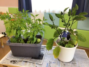 まずは大きくなったピーマンとナスの収穫です!
