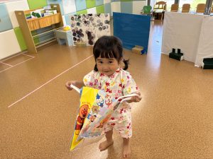 バッグとスタンプカードを持ち、待ちきれない!と言った様子のいちご組さん。「もーいーかーい!」とりんご組さんに声を掛けていましたよ🎵